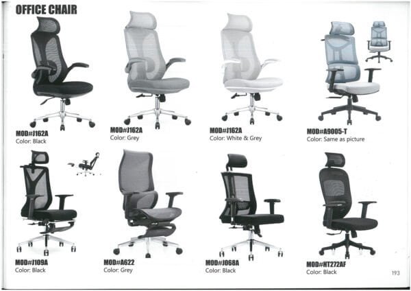 The Office Chair Collection is designed to provide ergonomic support, long-lasting durability, and modern professional style—making it the ideal seating solution for office, home workspaces, and study areas. Moreover, these chairs are built to support long working hours while maintaining comfort and functionality.