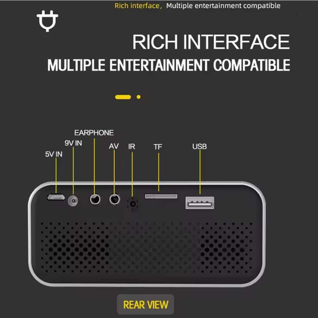 With its wired mirroring support, the projector allows you to connect your smartphone directly using a data cable—without the need for WiFi. Consequently, you can stream movies, view photos, or display apps instantly. Furthermore, the device supports USB, AV, TF card, and earphone ports, making it compatible with a wide variety of media devices such as USB drives, DVD players, speakers, TV boxes, and hard drives.