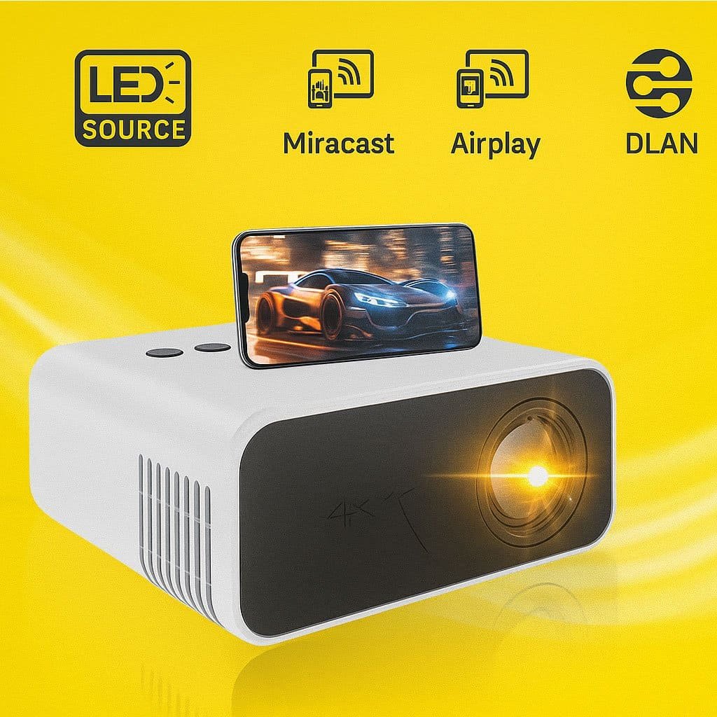 The YT500 MINI Projector is a compact and lightweight home cinema device designed for users who want clear visuals, easy setup, and reliable performance. It delivers bright LED projection with 24 ANSI brightness and a 320×240 native resolution, making it suitable for small rooms, kids’ spaces, and casual movie viewing. Moreover, it supports wired screen mirroring for Android and iOS, allowing you to enjoy videos, photos, and apps directly on a big screen.
